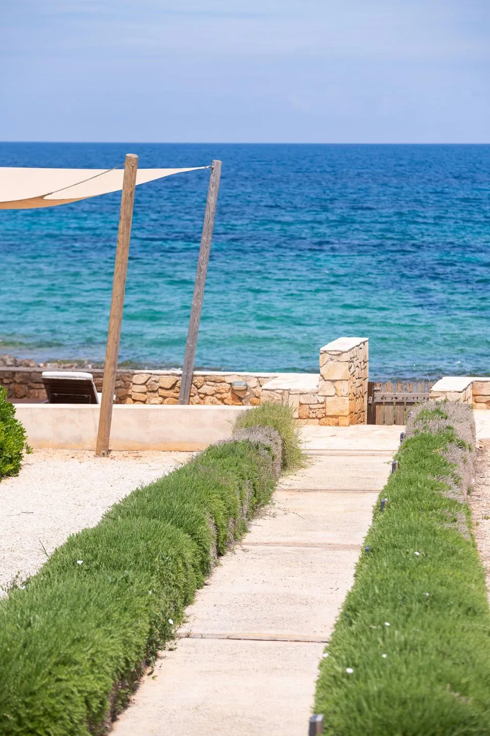 Die 1985 erbauten Esperides-Häuser wurden 2008, 2018 und 2023 renoviert. Die Einrichtung ist schlicht und farbenfroh gestaltet und vermittelt eine warme, gemütliche Atmosphäre. Im Außenbereich dominieren erdige Farben sowie natürliche, lokale Materialien. Von der vorderen Terrasse mit Gartenmöbeln gelangt man direkt in den Garten mit herrlichem Ausblick auf das Meer und die Küstenlandschaft – und mit direktem Zugang zum Wasser. An das Wohnzimmer mit Sofa und zwei Einzelbetten schließen sich die offene Küchenzeile, das Schlafzimmer und das Bad an. Vom Wohnzimmer führt ein direkter Ausgang auf die vordere, überdachte Terrasse mit traumhaftem Meerblick und mediterraner Umgebung, vom Schlafzimmer ein weiterer Ausgang auf die rückwärtige Terrasse.