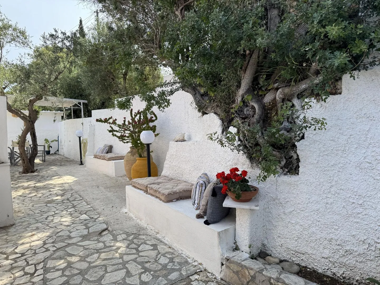 In schöner Hanglage, umgeben von Olivenhainen, über dem feinen Peroulia Sandstrand liegt das hübsche Anwesen Marema. Die 3 Ferienwohnungen liegen nebeneinander, jeweils mit eigenem Außeneingang. Die darunter liegenden Souterrain-Wohnungen werden von der Vermieterfamilie genutzt. Das Anwesen Marema ist umgeben von einem schönen, abgeschlossenen Gartengrundstück, bewachsen mit Bananenstauden, Zitrusbäumen und zahlreichen mediterranen Pflanzen und Blumen. Die Rasenfläche im Vorgarten steht allen Gästen gemeinsam zur Verfügung.