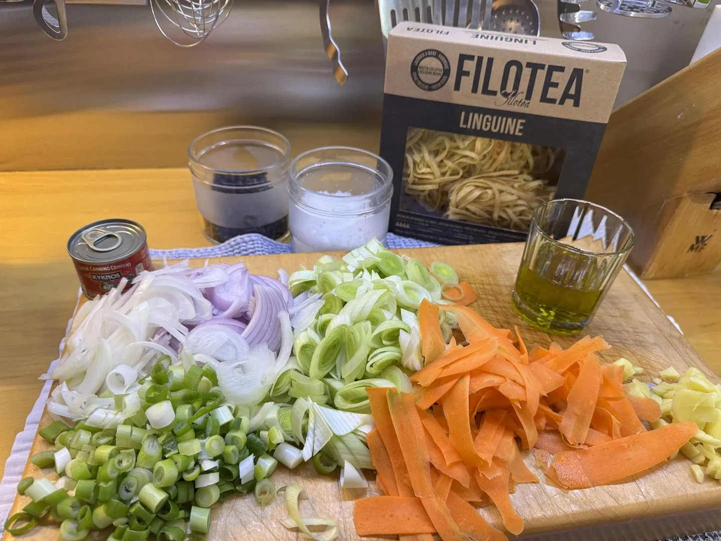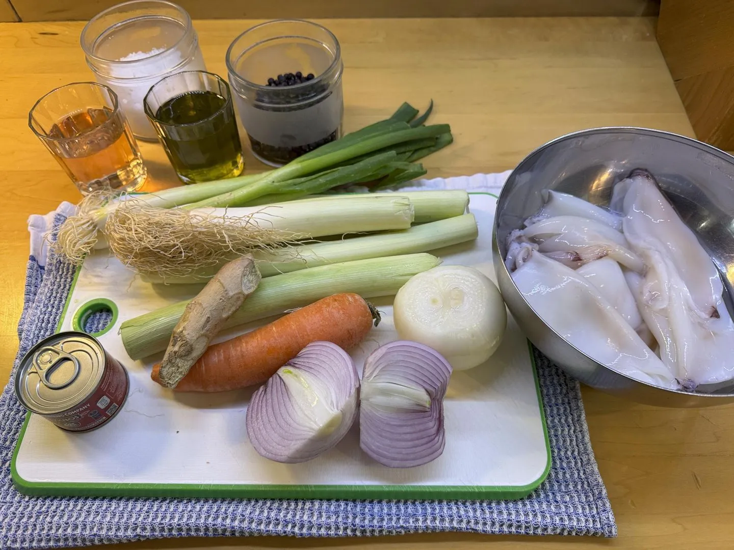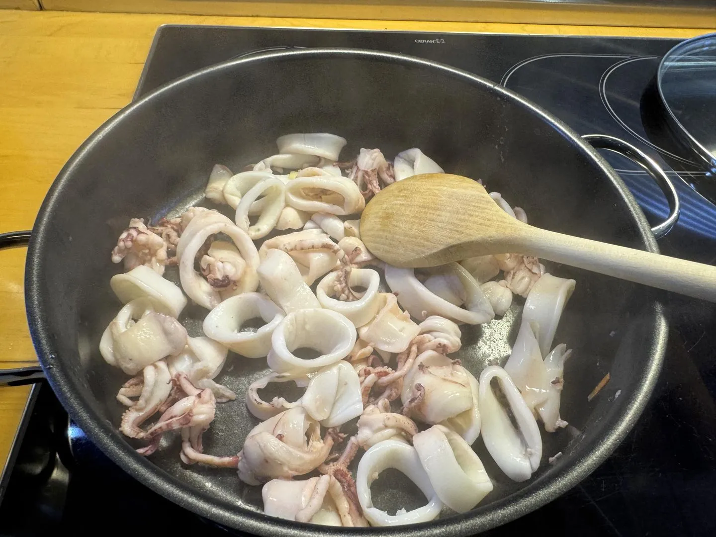 | tiefgefrorene* (nicht panierte) oder frische Kalamare, in feine Scheiben geschnitten | 1 kg |